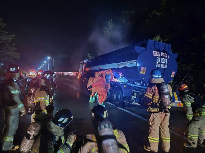 충남 공주시 당진-대전고속도로에서 염산 유출 사고 발생